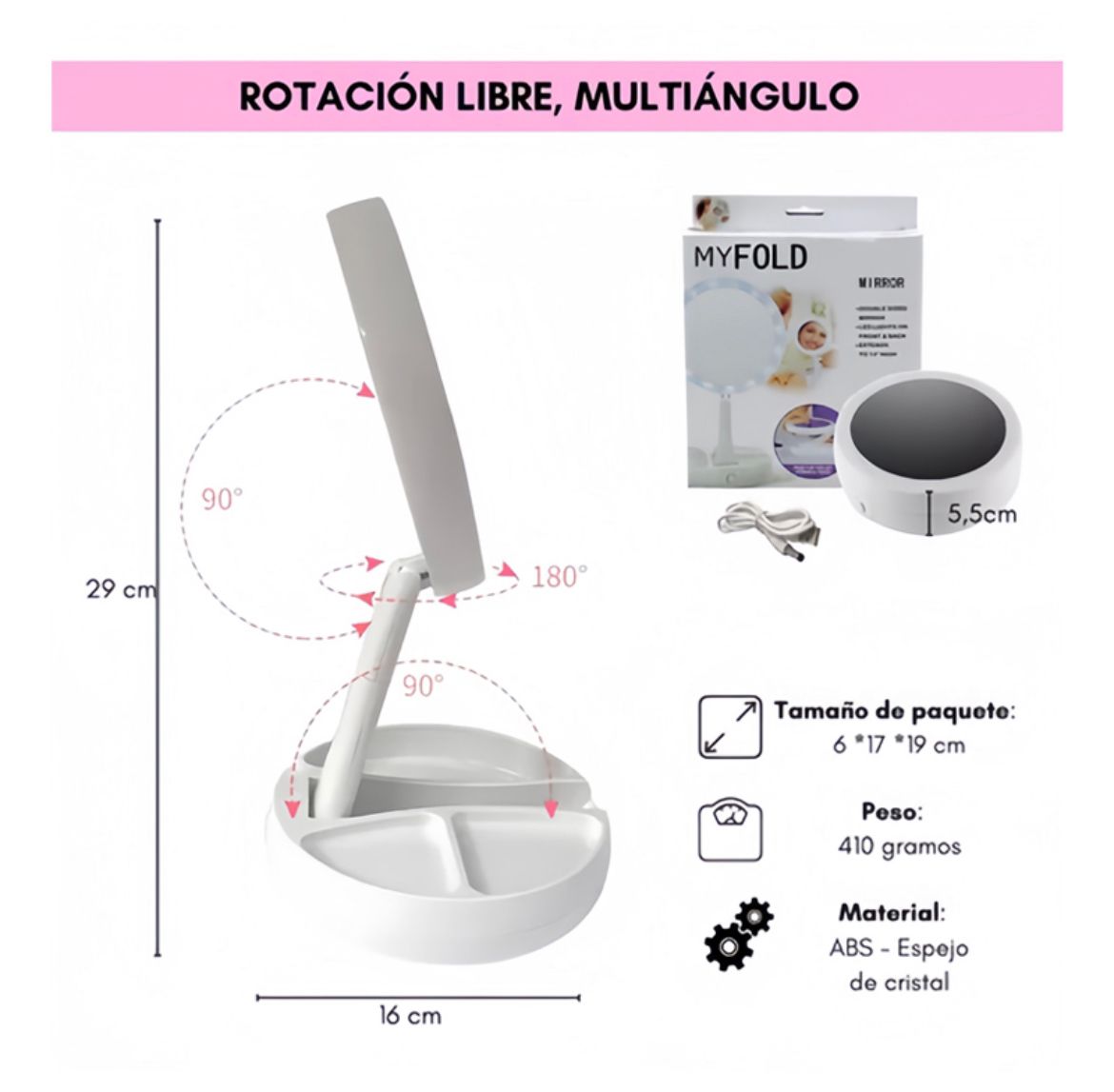 El espejo de maquillaje con luz LED que te acompaña a donde vayas.